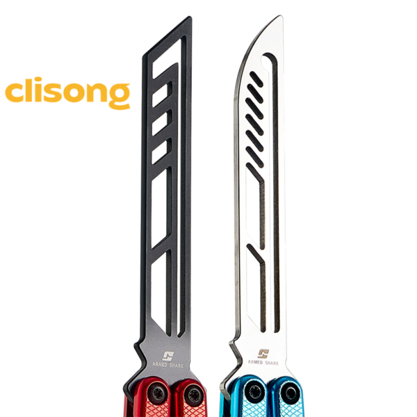 The Squidindustries Krake Raken (Kraken) V3 balisong trainer (butterfly knife)d by Armed Shark.?Compared with the V2.5. the blade of the V3 is thicker. which optimizes the weight balance. In addition. the zen pins of V3 also adopt the press-fit design.